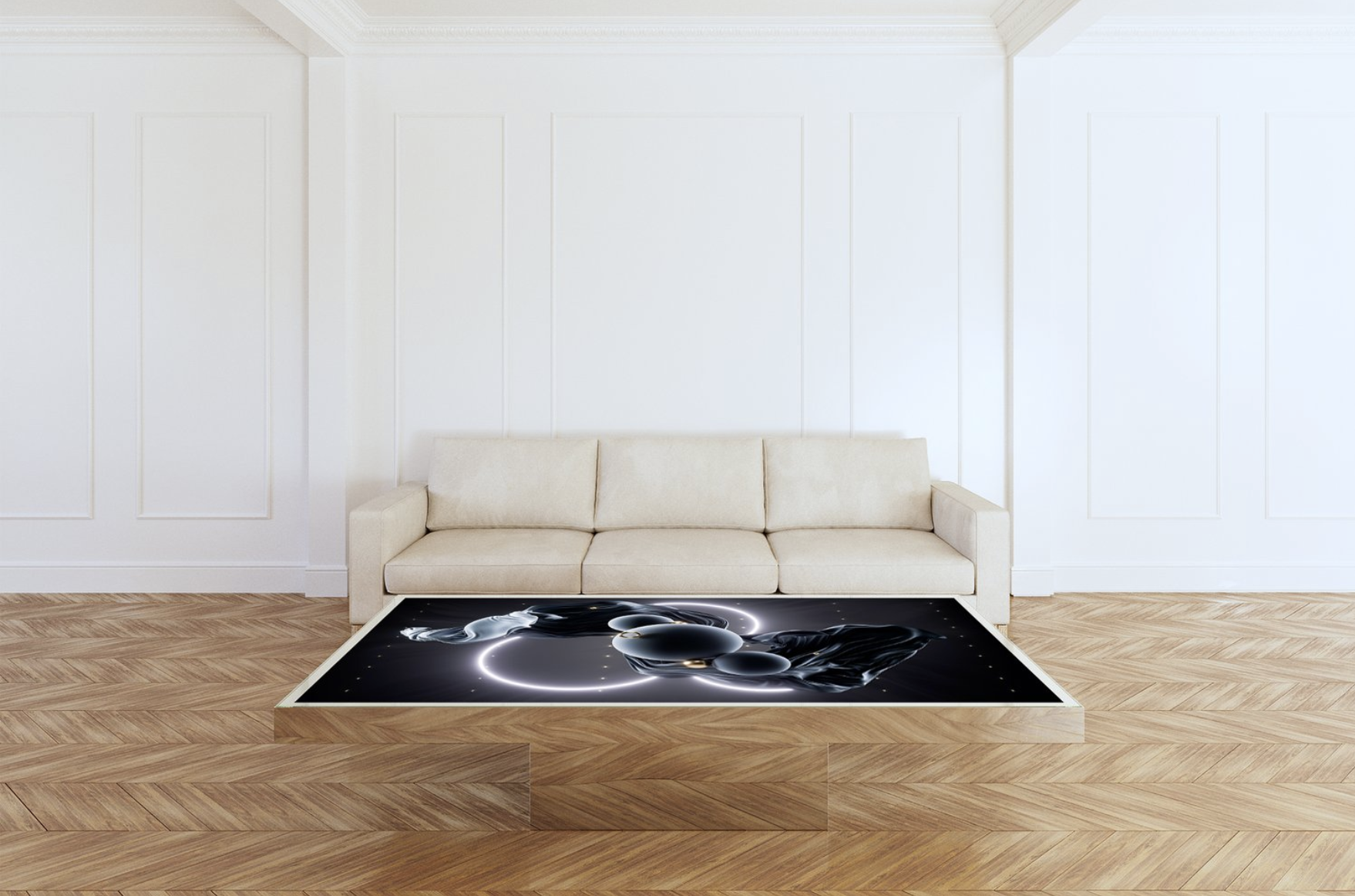 Dalbin Paris has created coffee tables with screens as their tops, elegantly integrating digital artworks into centerpiece furniture.