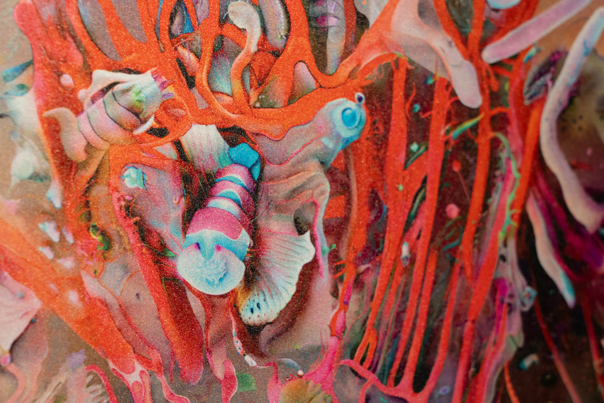 The result is a fluid visual environment in which boundaries dissolve: organisms, currents, and digital structures influence one another. Rather than presenting discrete forms, the work proposes a condition of continuous relationality, suggesting that digital systems and artificial life are not external observers but entangled participants within the same ecological fabric. In doing so, Decohering Delineation invites us to reconsider perception itself, not as a sequence of isolated moments, but as part of a larger, interconnected field.