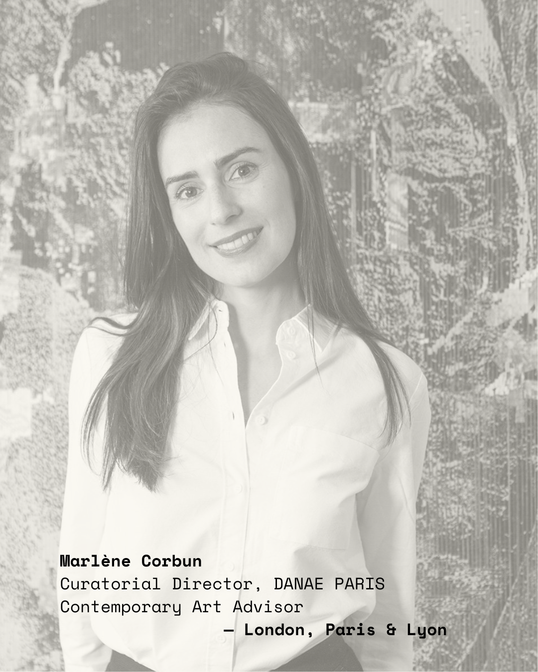Marlène Corbun is the curatorial director of DANAE PARIS and a contemporary art advisor working across London, Paris, and Lyon.