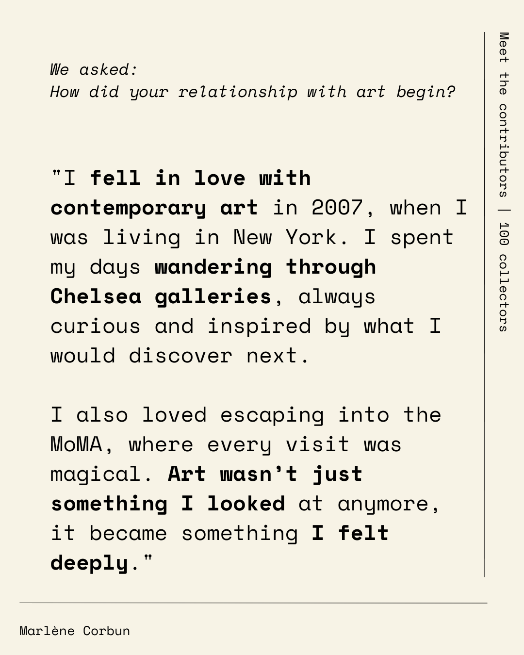 Meet Marlène here: https://www.100collectors.art/people/marlene-corbun