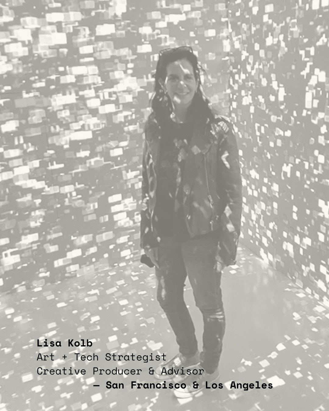 Lisa Kolb is an art and tech strategist, creative producer, and advisor based between San Francisco and Los Angeles.