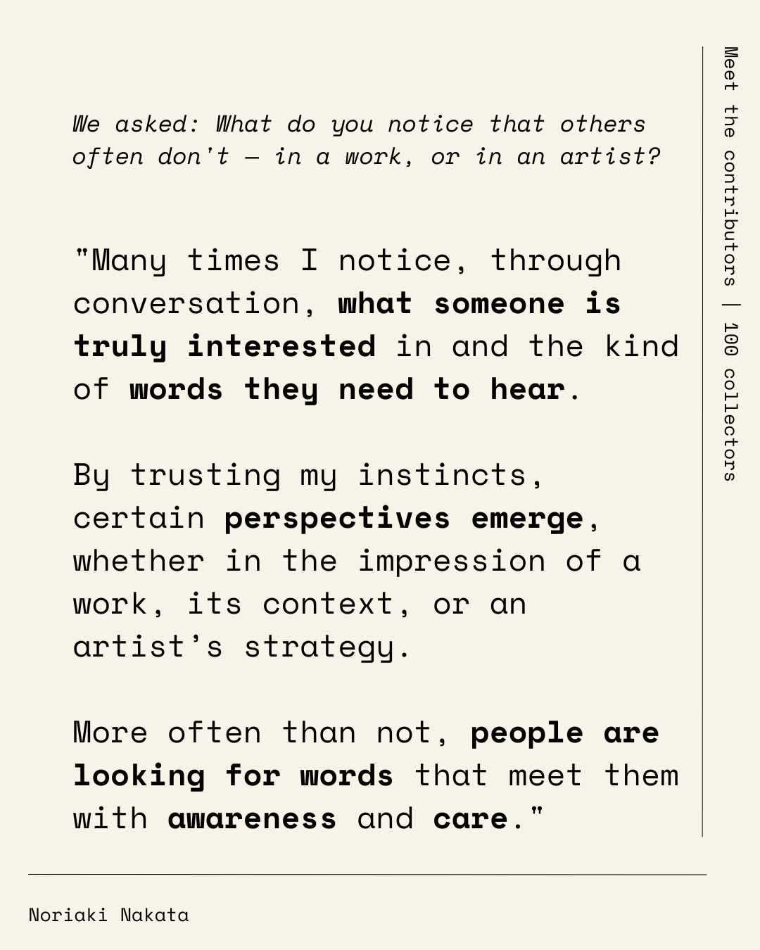 Meet Nori here: https://www.100collectors.art/people/noriaki-nakata